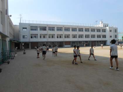 今日も朝から大変暑い状況です。始業前、子どもたちは運動場に出て遊んでいます。6年生は、日陰を使ってドッジボール。でも、やがてこの日陰も10時過ぎには無くなります。暑〜い!