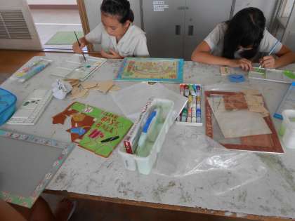 家庭科の袋づくりに昼休みを使ってまで仕上げている5年生ですが、図工のパズルづくりにも精を出しています。あと1週間で夏休み。がんばれ5年!