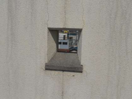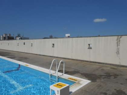 プールの仕切りに、小さな窓(?)があります。