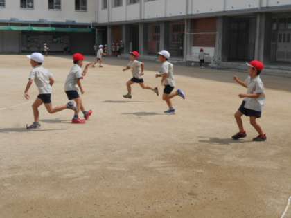 1年生も、1学期の頃は、一人一人が自由に遊んでいたんですが、最近ではみんなで決めた遊びをするようになってきました。