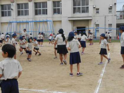 今日は、たてわり班活動でした。雨が降る前だったので楽しく遊べました♪