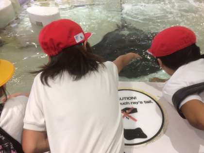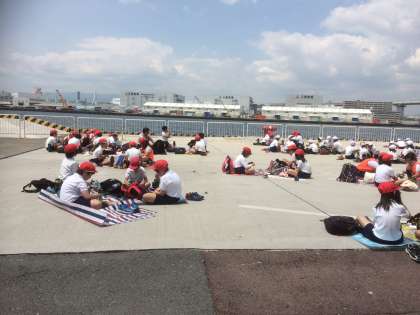 海遊館を出た後は、海の見えるところでお弁当。みんな笑顔でした。