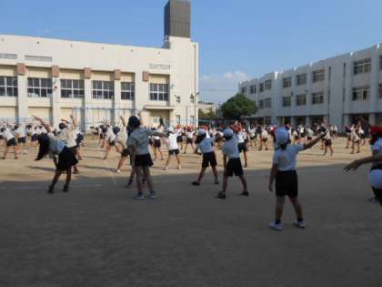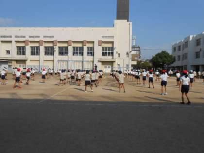 朝から青空の下でラジオ体操!とても気持ちがいいです!