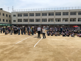 運動場に集まり、保護者とお子さんのお名前を確認した後、お子さんを引き渡しました。