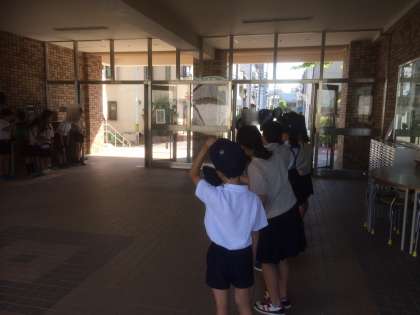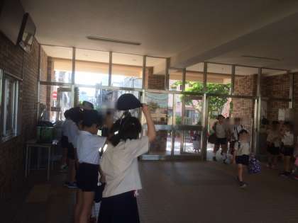 玄関に並んで元気にあいさつをしました。