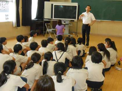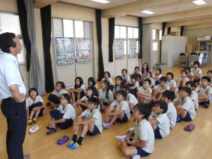 6年生は、此花警察署生活安全課少年係長 塩見様による防犯教室を行いました。昨年は、梅田サポートセンターの方のお話を聞きましたが、今年は此花署の警察官の話でした。楽しい夏休みにするためには、一人ひとり注意しなければいけません。