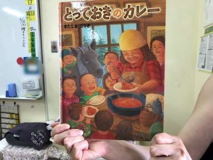最後に読んでくださった「とっておきのカレー」はクスッと笑えて、心があったかくなる絵本でした。8月の自然体験学習で、みんなの心がこもったカレーを作ることができるといいな、と思います。