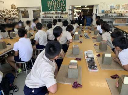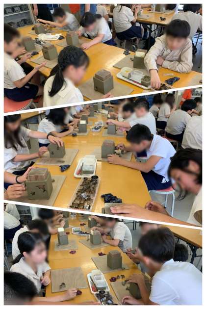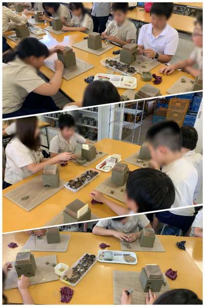 『夢工房』さんで瓦粘土陶芸体験をしています。