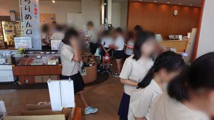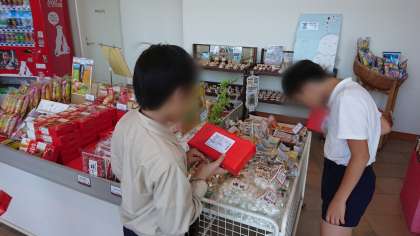 宿舎に到着後、お土産を買っています。どれにするか、迷ってしまいます。