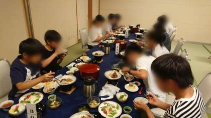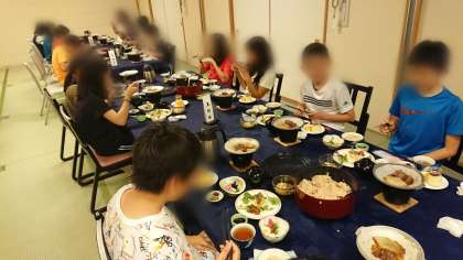 夕食の時間になりました。みんな揃って「いただきます。」豪華なお料理に、みんな大喜びです。