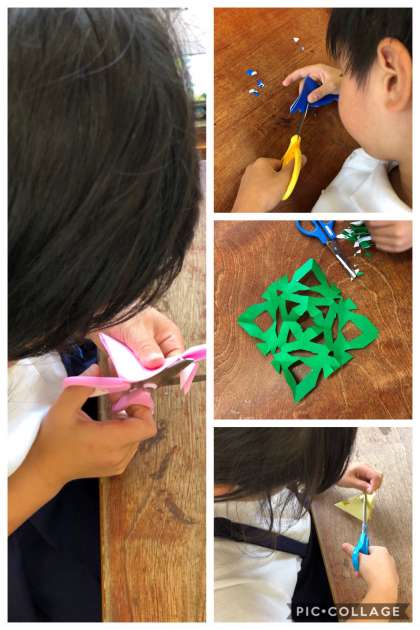 1年2組 チョキチョキかざり(図画工作科)