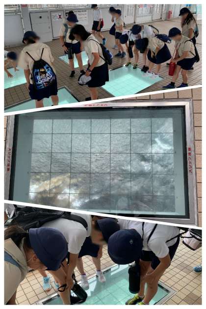 ガラス張りの所でも、恐る恐る覗き込んで渦を観察していました。