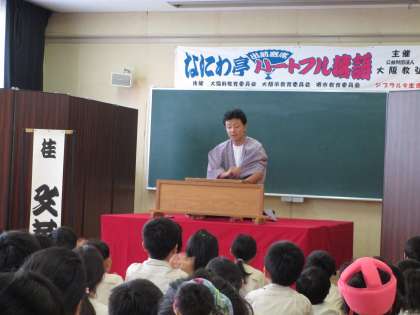 小噺体験では、児童と先生が実際に高座に上がって小噺を披露しました。