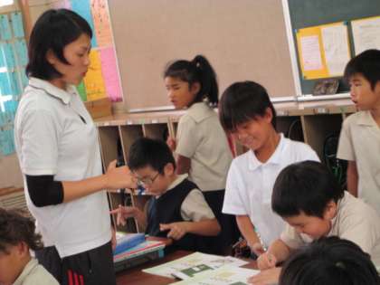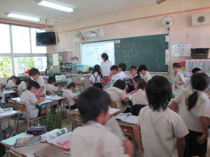 算数で九九の授業でした。2年生の子どもたちも楽しそうに勉強していました。