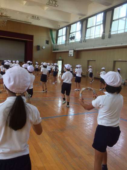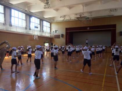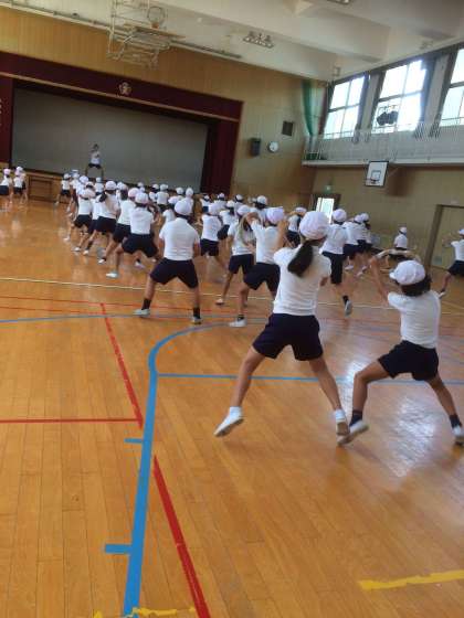 講堂でダンスを踊りました。汗びっしょりになって、少し難しい振りにも挑戦していました。