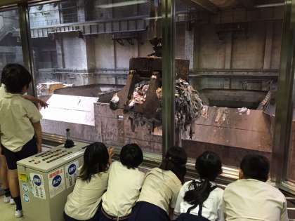 パッカー車が運んで来たごみをどのように処理するのかをお話ししていただいたり、映像を観せていただいたりした後、工場の見学をさせていただきました。