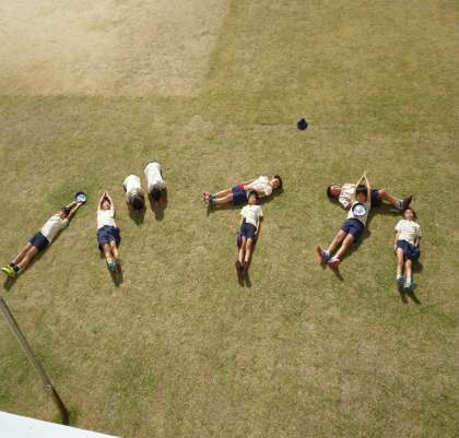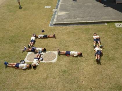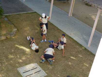 子どもたちが芝生に寝転がっていたので担任の先生がパシャリ!
