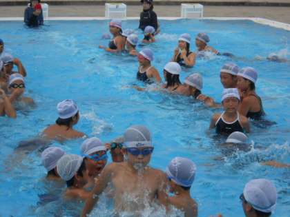 夏休みのプール開放が始まりました。泳力が伸びるようにがんばりましょう。
