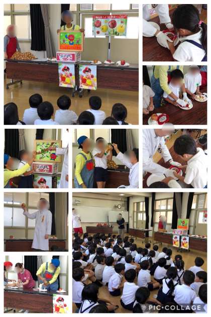 3時間目に1・2年生合同で、りんごの出前授業をしていただきました!