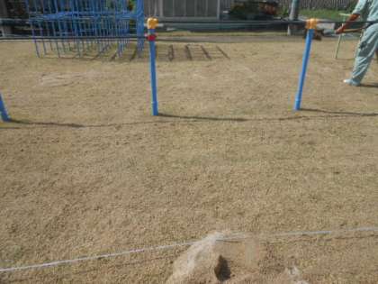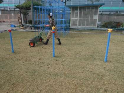 11月の上旬に冬芝を刈り、この上で遊べるようにします。