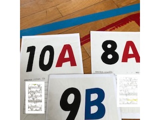 たてわり班のリーダーさんが、写真のボードをみんなに分かるように掲げています。