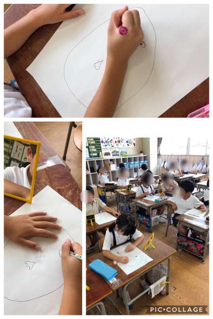 今日は鏡を使って、自分の顔を観察し、下絵をかきました。