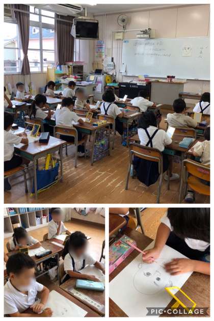 ぼくのかお わたしのかお(紙版画)(1年2組 10月2日 図工科)