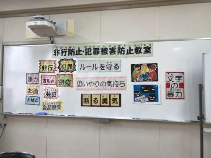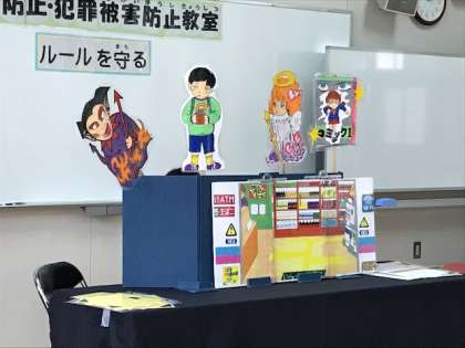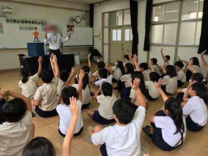 少年サポートセンターの方から、お話を伺いました。非行や犯罪に関わらないようにするために大切なことを、人形劇などを通して分かりやすく教えていただきました。