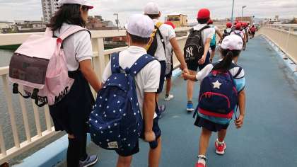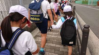 高学年に手を引かれて無事に学校到着。