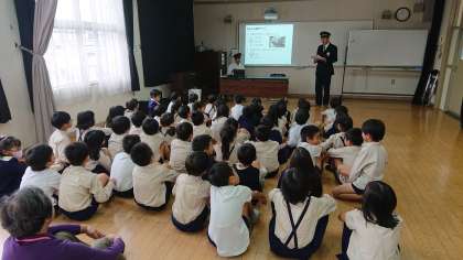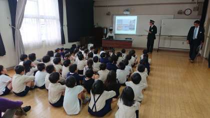 今日の三時間目は出前授業で阪神電車の方がきてくださりました。クイズや、たくさんの写真を見せていただき、阪神電車の工夫やたくさんのことを学習できました。