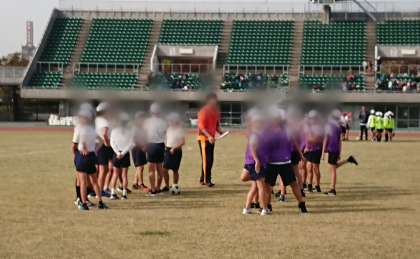 予定通りスタジアムに到着しています。午前中はサッカーとドッジボールを行います。