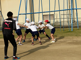 2時間目は、コーチの自己紹介のあと、準備運動を兼ねて鬼ごっこをしました。