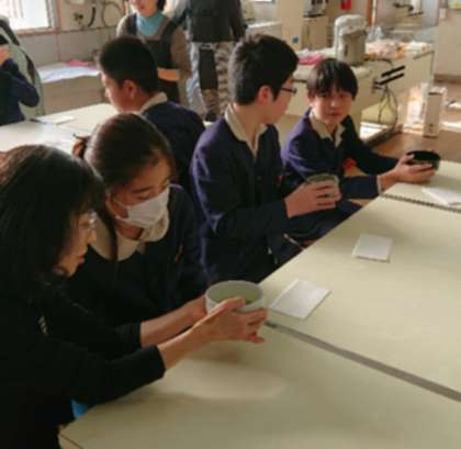 昨日のセレッソの出前授業に続き、今日は地域のお茶の先生のご協力をいただき、茶道体験の出前授業が行われました。