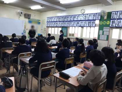 今日は、弁護士の先生にお越しいただき、いじめ防止に関するお話をしていただきました。いじめをとめるためには、傍観者にならずに自分ができることをやろう、ということを学習しました。「いじめられてる人に後でそっと声をかけに行く。」などそれぞれ自分ができることを考えて書いていました。