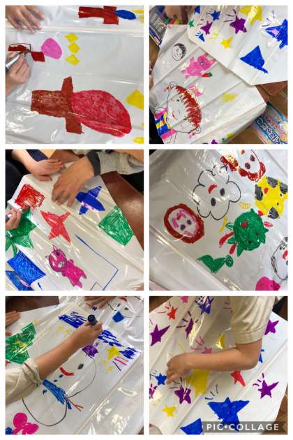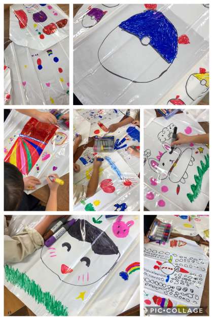大きな凧いっぱいに、みんな思い思いの絵をかきました!