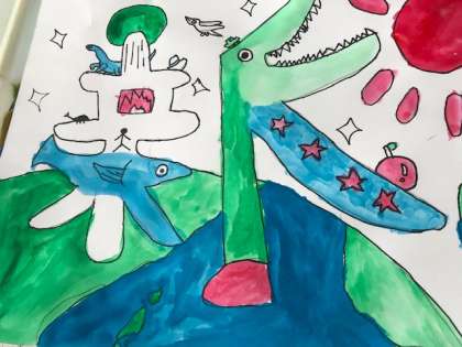 「漢字一文字から広がる世界」というテーマで、絵を描いています。