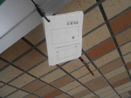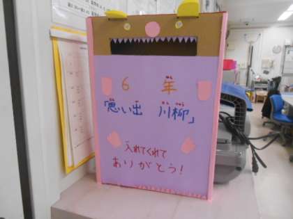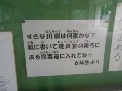 投票用紙に好きな川柳を書いて、職員室後ろのドアから入ってすぐのところに設置してある、かわいい投票ボックスにあなたの一票を!