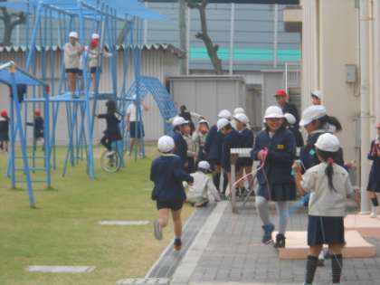 こんな小春日和に・・・子どもたちは運動場に出て体を動かします。