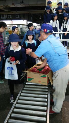せりの合図は、こうやって指で示します。一緒にしてみました。