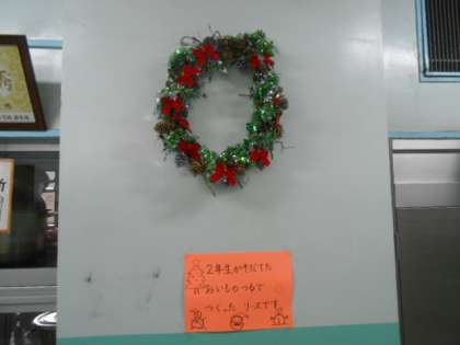給食室へ行ってみると、クリスマスリースが・・・・