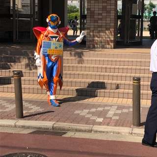 > セイバーミライが道を歩くと、いつもの町がちょっとちがったふうに見えました