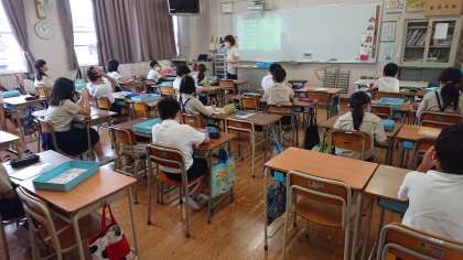 午前中は理科の実験をした後、家庭科のお話を聞きました