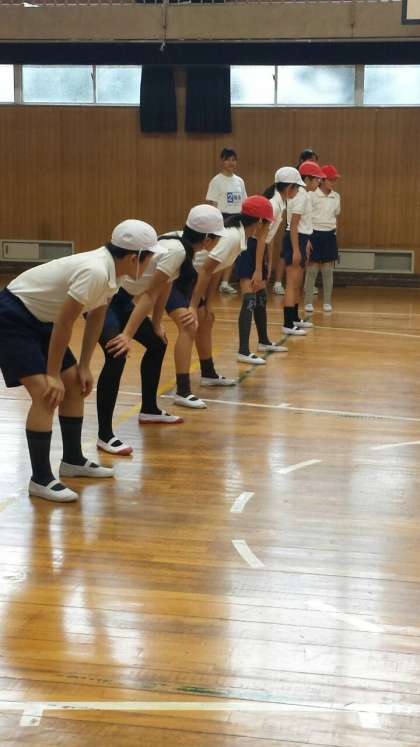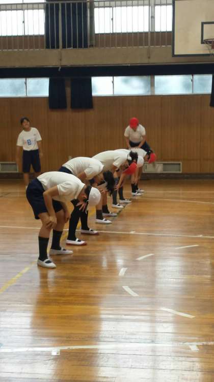 お次は・・【体育】馬跳びで競争中〜(^o^)丿
