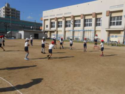子ども同士声をかけ合って、チームのみんながボールを触れるように頑張っていました!