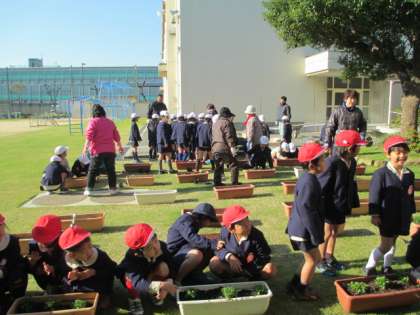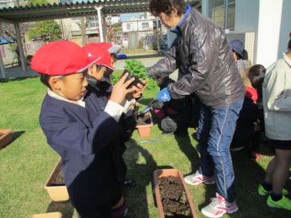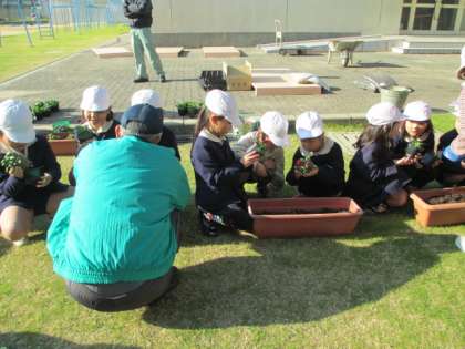 1.2年生が、はぐくみネットのみなさんと一緒に「花いっぱい運動」に取り組みました。