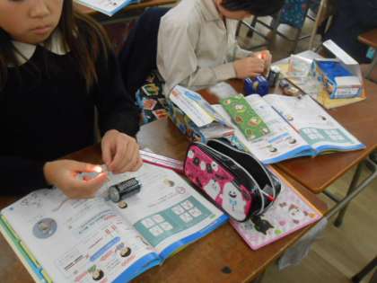 自分たちで回路を作り、ソケット無しで豆電球が点くかどうか・・・・