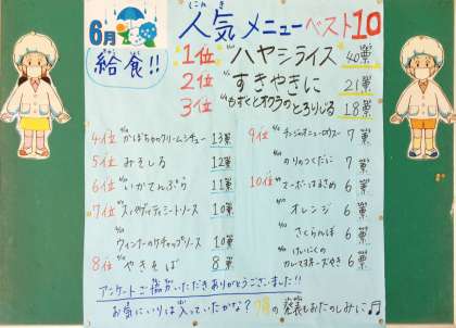 今日は各クラスをまわって、6月人気メニューランキングトップ10を発表しました!!