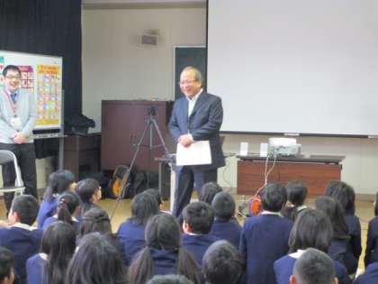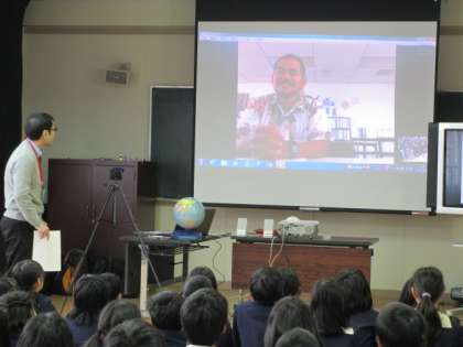 今日は、スカイプを使って、トンガに派遣されている青年海外協力隊員の三宅隊員と交流をしました。最初にトンガの言葉であいさつをし、次に、トンガ王国の産業や、食べ物など、トンガの暮らしについて学習しました。最後に協力隊のお仕事のお話も聞かせていただきました。