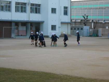 そして、校庭の水たまりが凍っていて子どもたちは大喜び!(^^)!