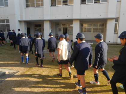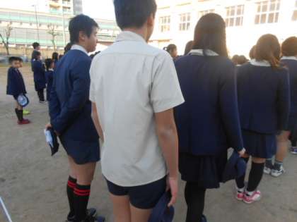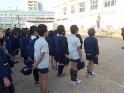 今朝の気温は5度でした。高学年男子の中に半袖ブラウスでがんばっている子どもがいます。がんばれ〜!